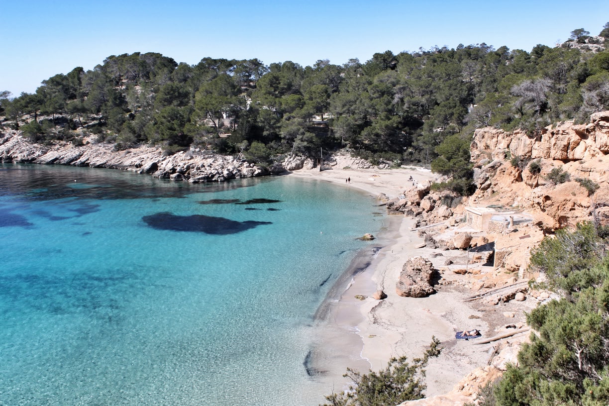 Rendez-vous cette fois à l’ouest d’Ibiza, sur la plage de Cala Tarida. Cette plage d’Ibiza est un lieu très prisé des touristes. Ici, on profite du soleil, on se baigne dans une eau magnifique et on profite des différents sports nautiques proposés (pédalo, école de plongée, volley-ball) avant d’aller prendre un verre en terrasse face à la mer pour vivre des vacances de rêve à Ibiza en famille ou entre amis.