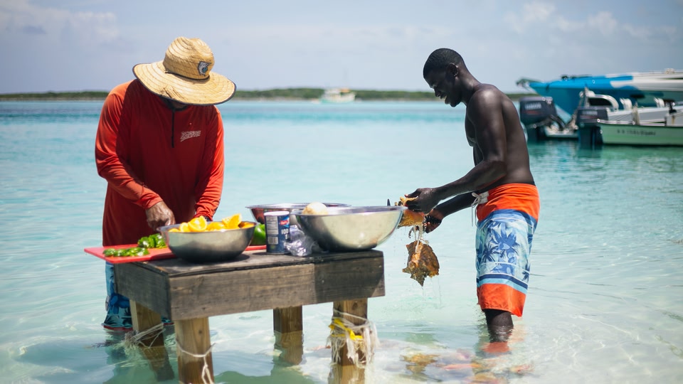 Presque tous les bons restaurants des Bahamas proposent des fruits de mer frais. La conque, prisée des habitants, est souvent servie coupée en dés dans une salade fraîche assaisonnée de citron vert, ou panée et frite. Rendez-vous à Arawak Cay (« The Fish Fry »), un regroupement coloré de restaurants, de food trucks et de stands juste à côté de Nassau. Vous pourrez y déguster de la conque, du vivaneau et du mérou tout juste pêchés et cuisinés à la perfection.