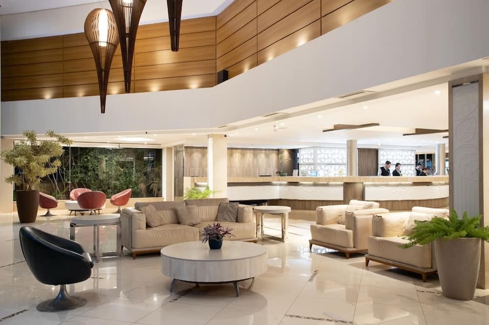 Se trouvant à Foz do Iguaçu (Champs d'Iguaçu), Recanto Cataratas - Thermas, Resort e Convention est à moins de 10 minutes en voiture de Cataratas JL (centre commercial) et de Cataratas Avenue. Ce complexe touristique très pratique pour les familles se trouve à 7,9 km de Pont de l'Amitié et à 10,4 km de Centre commercial Catuaí Palladium. Passez de purs moments de détente dans l'incroyable spa de l'hébergement, un centre bien-être qui propose des massages et des soins corporels. Si vous mettez la détente avant toute autre chose, n'hésitez pas à profiter des nombreuses infrastructures de loisirs proposées par l'hébergement et qui incluent notamment des sources chaudes, une discothèque et une piscine extérieure. Ce complexe touristique propose également l'accès Wi-Fi à Internet gratuit, un service de conciergerie et une salle de jeux vidéo. Pendant votre séjour, vous vous régalerez à Aranda, l'un des 2 restaurants de ce complexe touristique et profiterez d'un service d'étage 24 h/24. Idéal pour une soirée cocooning pleine de saveurs ! Pour manger sur le pouce, vous trouverez aussi sur place un café. Détendez-vous devant un verre au bar en bord de piscine ou dans un des 3 bars/lounges de l'hébergement. Un petit déjeuner buffet gratuit est servi tous les jours de 06 h 30 à 10 h 00. Les équipements et services proposés incluent un centre d'affaires ouvert 24 h/24, une réception ouverte 24 h/24 et une consigne à bagages. Les espaces événements de ce complexe touristique comprennent un espace de conférence et des salles de réunion. Un parking gratuit est disponible dans l'enceinte de l'hébergement. Les 501 chambres de l'hébergement vous invitent à la détente et comprennent un minibar et une TV connectée. Votre chambre est dotée d'un lit avec surmatelas. L'accès Wi-Fi à Internet gratuit vous permet de rester en contact avec le reste du monde et votre divertissement est assuré par des chaînes par câble. Une salle de bain privée avec une douche est à votre disposition. Vous y trouvez également un sèche-cheveux et des peignoirs.