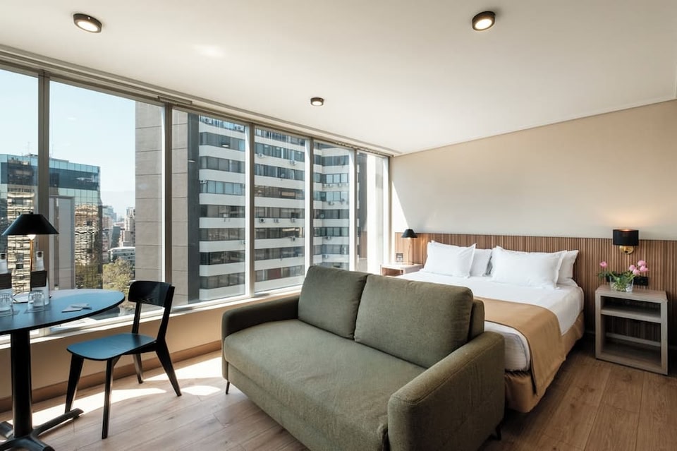 En choisissant Terrado Lyon, vous profiterez d'un séjour en plein centre de Santiago, à 1 minutes de voiture de Costanera Center (complexe immobilier) et à 6 minutes de Parque Arauco (centre commercial). Cet hôtel se trouve à 0,2 km de Centre commercial Galería Drugstore et à 0,3 km de Parque de las Esculturas. La détente avant tout ! Profitez des nombreuses options de loisirs disponibles dans l'hébergement, notamment une piscine extérieure en saison, ou admirez la vue qui vous est offerte depuis une terrasse. Cet hôtel propose également l'accès Wi-Fi à Internet gratuit, un service de conciergerie et un service de garde d'enfants (en supplément). Vous êtes gourmand ? cet hôtel vous propose un café pour reprendre quelques forces et si vous préférez le confort de votre chambre, vous pourrez aussi compter sur un service d'étage 24 h/24 très pratique. Pour bien finir la journée, vous trouverez sur place un bar / salon. Un petit déjeuner buffet gratuit est servi tous les jours de 06 h 30 à 10 h 30. Les équipements et services proposés incluent un centre d'affaires ouvert 24 h/24, un service de nettoyage à sec / blanchisserie et une réception ouverte 24 h/24. Les 91 chambres climatisées de l'hébergement vous invitent à la détente et comprennent un minibar et une télévision LCD. L'accès Wi-Fi à Internet gratuit vous permet de rester en contact avec le reste du monde et votre divertissement est assuré par des chaînes par câble. Une salle de bain privée avec une douche est à votre disposition. Vous y trouvez également des articles de toilette gratuits et un sèche-cheveux. Les équipements et services offerts par l'hébergement comprennent un téléphone, mais aussi un coffre-fort et un bureau.