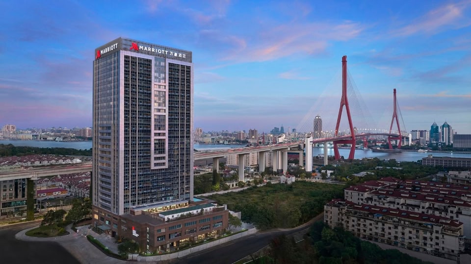Le Shanghai Marriott Hotel Yangpu Riverside est situé dans le quartier de Yangpu Riverside, à côté du fleuve Huangpu et le long du pont Yangpu, offrant une vue pittoresque sur le fleuve Huangpu et reliant Pudong et Puxi.
