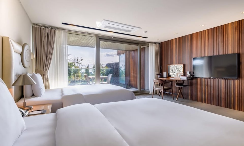 Se trouvant à Seogwipo (Jungmun), Bayhill Pool & Villa est à moins de 10 minutes en voiture de Vallée d'Andeok et de Parc à thème PLAY K-POP. Cet hôtel de luxe se trouve à 6,1 km de Musée des ours en peluche de Jeju et à 6,5 km de Parcours de golf de Jungmun. Rejoignez le spa de l'hébergement, un centre bien-être qui propose des soins corporels et des soins du visage, et permettez qu'on prenne soin de vous. N'hésitez surtout pas à profiter des nombreuses infrastructures de loisirs qui incluent notamment un centre de fitness et une piscine extérieure en saison. Parmi les équipements et services offerts par cet hôtel vous trouvez également l'accès Wi-Fi à Internet gratuit, un service de conciergerie et un service d'organisation de mariages. De délicieuses spécialités Cuisine locale et internationale vous attendent à Narnia Restaurant, un restaurant gastronomique avec terrasse qui offre une sympathique vue sur le jardin et qui abrite un bar, un bar / salon, parfait pour prendre un verre avant le dîner. Si vous préférez une soirée cocooning, un service d'étage (horaires limités) est à votre disposition. Un petit déjeuner composé de spécialités régionales est servi tous les jours de 08 h 00 à 10 h 30 moyennant un supplément. Les équipements et services proposés incluent un centre d'affaires ouvert 24 h/24, une réception ouverte 24 h/24 et un personnel polyglotte. Les espaces événements de cet hôtel comprennent un centre de conférence et une salle de réunion. Un parking gratuit est disponible dans l'enceinte de l'hébergement. Passez un séjour comme il se doit dans une des 29 chambres avec une décoration personnalisée de l'hébergement et profitez des nombreux équipements à votre disposition, notamment une cuisine avec un réfrigérateur et une machine à espresso. Votre lit est préparé avec une couette en duvet d'oie et de la literie de qualité supérieure. Les chambres sont dotées d'un balcon aménagé. L'accès Wi-Fi à Internet gratuit vous permet de rester en contact avec le reste du monde.