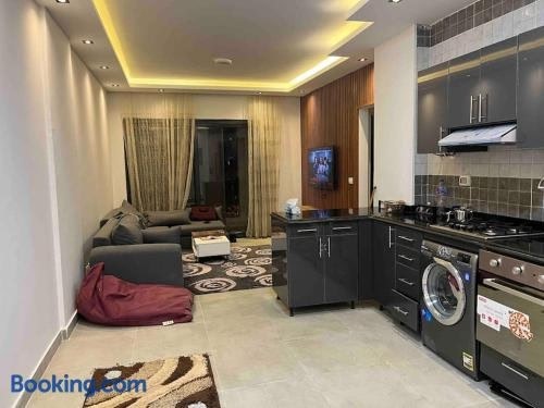 L’hébergement Stylish 2-Bedroom Apartment in Celia Compound, New Administrative Capital met à disposition un jardin, une terrasse et un bar. Il se trouve à Madīnat al Amal, à 33 km de ce lieu d’intérêt : Université américaine du Caire.
