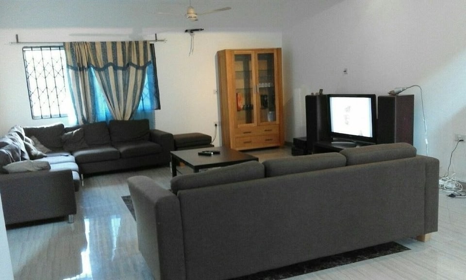 En choisissant Devon Villas à Pantang West, vous profiterez d'un agréable séjour à moins de 15 minutes en voiture de Accra Mall et Centre commercial Madina Market. Cette maison de vacances se trouve à 19,4 km de Ambassade américaine et à 23,5 km de Plage de Labadi. Profitez de la vue qui vous est offerte depuis une terrasse et un jardin, sans oublier les nombreux équipements et services qui caractérisent l'hébergement, notamment l'accès Wi-Fi à Internet (en supplément). Cette maison de vacances propose également une salle de jeux vidéo, une aire de pique-nique et des barbecues. Un petit déjeuner continental est servi tous les jours de 07 h 00 à 10 h 00 moyennant un supplément. Les équipements et services proposés incluent une réception ouverte 24 h/24 et une laverie. Un parking gratuit est disponible dans l'enceinte de l'hébergement. Passez un séjour comme il se doit dans une des 3 chambres climatisées de l'hébergement et profitez des nombreux équipements à votre disposition, notamment une cuisine avec un grand réfrigérateur/congélateur et four. Les chambres sont dotées d'un patio. Une télévision LCD avec chaînes par satellite assure votre divertissement, alors que l'accès Wi-Fi à Internet (en supplément) vous permet de rester en contact avec le monde. Les équipements et services offerts par l'hébergement comprennent un bureau et un micro-ondes. Le service d'entretien est assuré tous les jours.