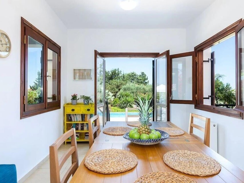 Offrant une vue sur la montagne, l’hébergement Villa Pyramus possède une piscine extérieure ouverte en saison, un salon commun et une terrasse, à environ 2,5 km de ce lieu d’intérêt : Plage d’Almyrida.