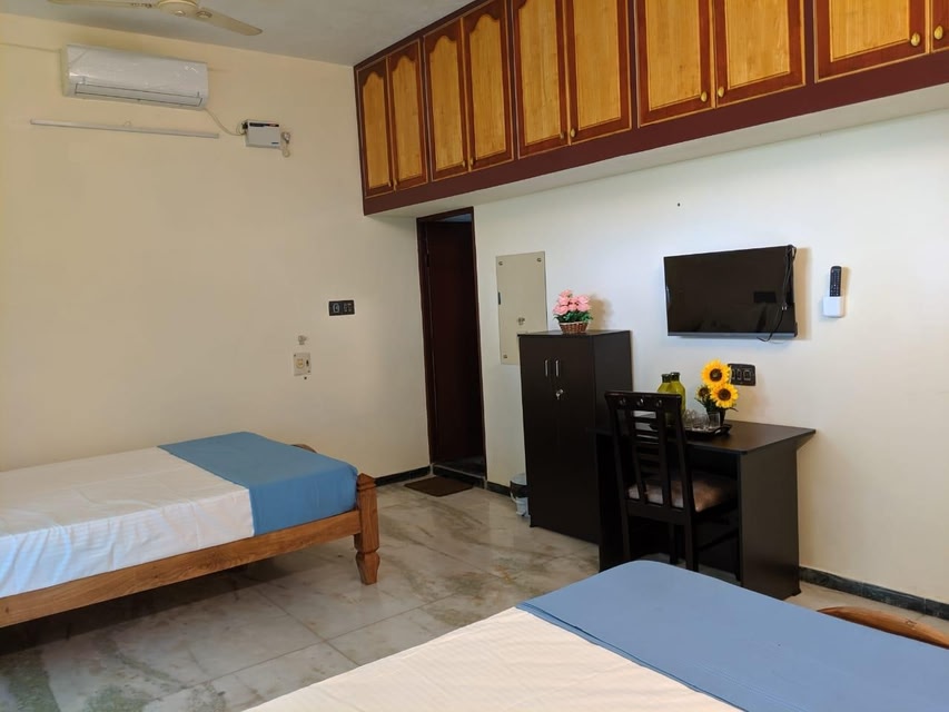 Bluemoon Bungalow offers top-notch services and amenities, ensuring guests experience utmost comfort. Maintain seamless communication using the complimentary Wi-Fi at hotel. Craving relaxation? Make the most of your stay at the Bluemoon Bungalow with convenient amenities like room service and daily housekeeping at your disposal. At Bluemoon Bungalow, every guestroom is provided with convenient amenities and fittings to ensure a comfortable stay. Enhance your experience at hotel with the knowledge that certain rooms are equipped with linen service and air conditioning for your convenience.A few accommodations within Bluemoon Bungalow offer unique design elements such as a balcony or terrace. Certain rooms boast in-room amusement features such as daily newspaper, television and cable TV, offering guests an enjoyable stay. In select rooms within the hotel, a refrigerator and bottled water is available to cater to your requirements when desired. Essential restroom facilities are equally significant, and at the hotel, some visitor bathrooms offer toiletries to enhance your experience. At the hotel, discerning guests can also enjoy on-site culinary facilities like BBQ facilities tailored to their preferences.