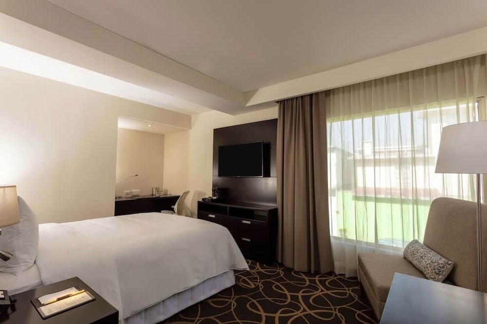 Profitant d'un bel emplacement à Toluca, DoubleTree by Hilton Toluca se situe dans le quartier des affaires, à moins de 5 minutes en voiture de Galerías Toluca et de Le Cosmovitral (œuvre d'art). Cet hôtel se trouve à 4,6 km de Cathédrale San José de Toluca et à 6 km de Estadio Nemesio Díez. Profitez de toute une variété d'infrastructures de loisirs qui incluent notamment une piscine couverte, un bain à remous et une salle de fitness ouverte 24 h/24. Parmi les équipements et services offerts par cet hôtel vous trouvez également l'accès Wi-Fi à Internet gratuit, un service de conciergerie et un service d'organisation de mariages. Pendant votre séjour, laissez-vous tenter par les saveurs de Restaurante Patio, un restaurant familial qui abrite aussi un bar, un bar / salon. Si vous préférez rester tranquille devant votre série préférée, un service d'étage (horaires limités) est à votre disposition. Un petit déjeuner buffet est servi en semaine de 06 h 00 à 10 h 00 et le week-end de 06 h 00 à 12 h 00 (en supplément). Les équipements et services proposés incluent l'accès à internet gratuit à Internet, un centre d'affaires ouvert 24 h/24 et un service de départ express. Si vous devez organiser une réunion à Toluca, faites confiance à cet hôtel qui dispose d'espaces événements mesurant 542 mètres carrés et comprenant un centre de conférence et 8 des salles de réunion. Un parking gratuit est disponible dans l'enceinte de l'hébergement. Les 145 chambres climatisées de l'hébergement vous invitent à la détente. Un accès gratuit au réseau Internet Wi-Fi et câblé vous permet de rester en contact avec le reste du monde et des chaînes par câble assurent votre divertissement. Une salle de bain privée avec une douche est à votre disposition. Vous y trouvez également des articles de toilette gratuits et un bidet. Les équipements et services offerts par l'hébergement comprennent un coffre-fort (suffisamment grand pour accueillir un ordinateur portable) et un bureau, mais aussi un téléphone avec des appels locaux gratuits.