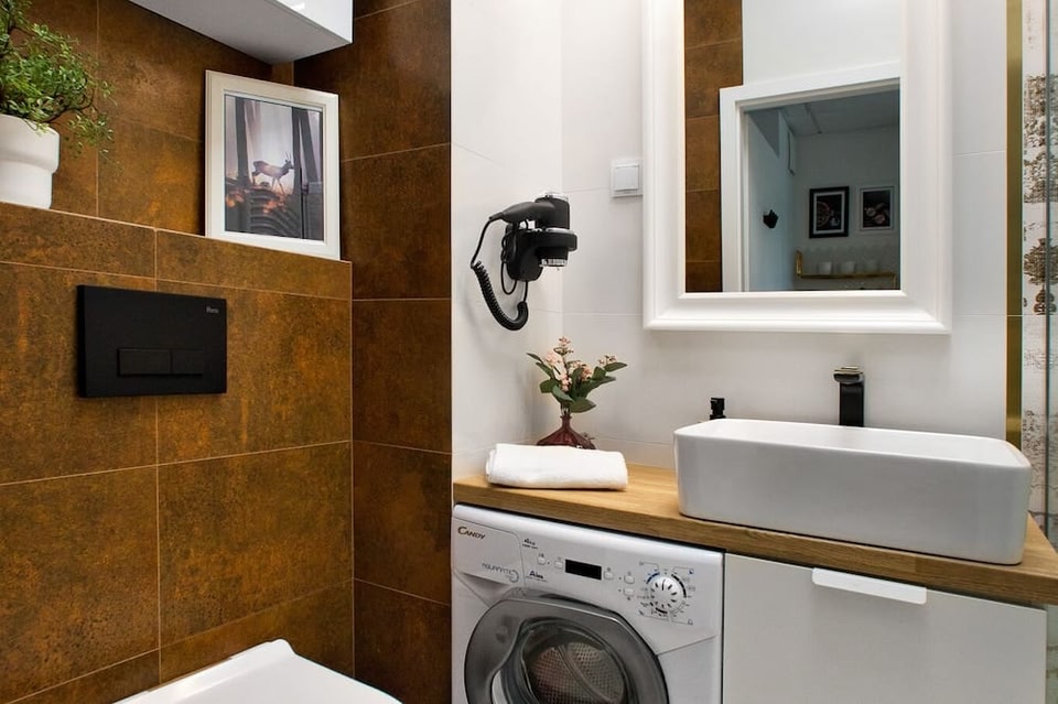 C’est dans le quartier Wola à Varsovie que vous trouverez cet appartement. Découvrez quelques hauts lieux culturels tels que les indispensables Musée du Soulèvement de Varsovie et Cimetière juif de Varsovie, ou explorez quelques curiosités locales comme les sympathiques Musée Frédéric Chopin et Centre des sciences Copernic. Envie de vivre un moment unique lors de votre séjour ? Consultez l'affiche des fantastiques Stade national et Stade Polonia Bydgoszcz, et préparez-vous à vibrer ! Cet appartement au charme incontestable à Varsovie est la solution idéale pour explorer les environs en toute simplicité. Grâce à la présence d'un parking sur place, vous pourrez décider d'y garer votre voiture et profiter d'une balade de 8 minutes jusqu'à EXPO XXI ou reprendre votre véhicule pour le trajet de 7 minutes jusqu'à Palais de la culture et des sciences. Préparez un bon petit plat maison dans la kitchenette équipée de tout le nécessaire : une plaque de cuisson, un réfrigérateur et un lave-vaisselle, mais aussi une cafetière, une bouilloire électrique et des ustensiles de cuisine. Connectez-vous au Wi-Fi gratuit ou installez-vous confortablement devant la télévision à écran plat. Parmi les équipements de salle de bains, vous trouverez un sèche-cheveux, des articles de toilette gratuits et des serviettes. Et puisque vous aurez accès à une machine à laver, inutile d'encombrer vos bagages.