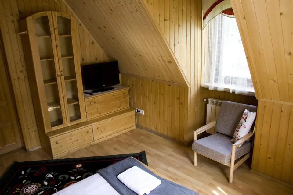 Location A great option for a journey on a budget - hotel «Zakońpiańska Chata - Domek Góralski Na Kamieńcu» is located in Zakopane. This hotel is located nearby from the city center. You can take a walk and explore the neighbourhood area of the hotel — Zakopane-Gubalowka Transmitter, Sanctuary of the Holy Family and Lower Rówień Krupowa.At the hotel Want to be always on-line? Wi-Fi is available. If you travel by car, you can park in a parking zone for free. Ski and snowboard fans will enjoy a skiing area. Pets are welcome here. The staff of the hotel speaks English, Spanish, Polish and Russian.Room amenities The room is warmly decorated and has everything you need to have a rest after a long eventful day. There is a TV. The room equipment depends on its category.