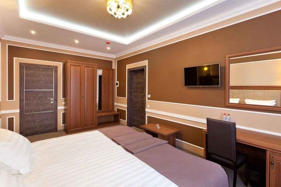 Profitant d'un emplacement de choix à Krasnodar (Okrug Zapadnyy), Chocolatier Hotel se trouve à moins de 5 minutes en voiture Jardin botanique de Berlin et Sanatorium Balnéaire. Cet hôtel se trouve à 2,4 km de Galerie d'art Bronze Horse et à 2,6 km de Centre commercial de Krasnodar. Profitez des nombreux équipements et services qui caractérisent l'hébergement, notamment l'accès Wi-Fi à Internet gratuit et un service de conciergerie. Tout est prévu sur place pour régaler vos papilles ! Ne manquez pas la cuisine généreuse de Ochag, un restaurant qui vous fera découvrir de délicieuses spécialités Cuisine locale pour le déjeuner et le dîner. Si vous préférez le confort de votre chambre, vous pourrez compter sur un service d'étage (horaires limités) très pratique. Et pour les petits creux, vous trouverez également sur place un café. Pour bien finir la journée, vous trouverez sur place un bar / salon. Un petit déjeuner continental gratuit est servi tous les jours de 08 h 00 à 11 h 00. Les équipements et services proposés incluent une réception ouverte 24 h/24, une consigne à bagages et une laverie. En échange d'un supplément, l'hébergement propose une navette vers et depuis l'aéroport (24 h/24) et un parking gratuit se trouve dans l'enceinte de l'hébergement. Les 11 chambres climatisées de l'hébergement vous invitent à la détente et comprennent un réfrigérateur et une télévision à écran plat. L'accès Wi-Fi à Internet gratuit vous permet de rester en contact avec le reste du monde et votre divertissement est assuré par des chaînes par satellite. Une salle de bain privée avec une douche est à votre disposition. Vous y trouvez également des articles de toilette gratuits et un sèche-cheveux. Les équipements et services offerts par l'hébergement comprennent un coffre-fort et un bureau, mais aussi un téléphone avec des appels locaux gratuits.